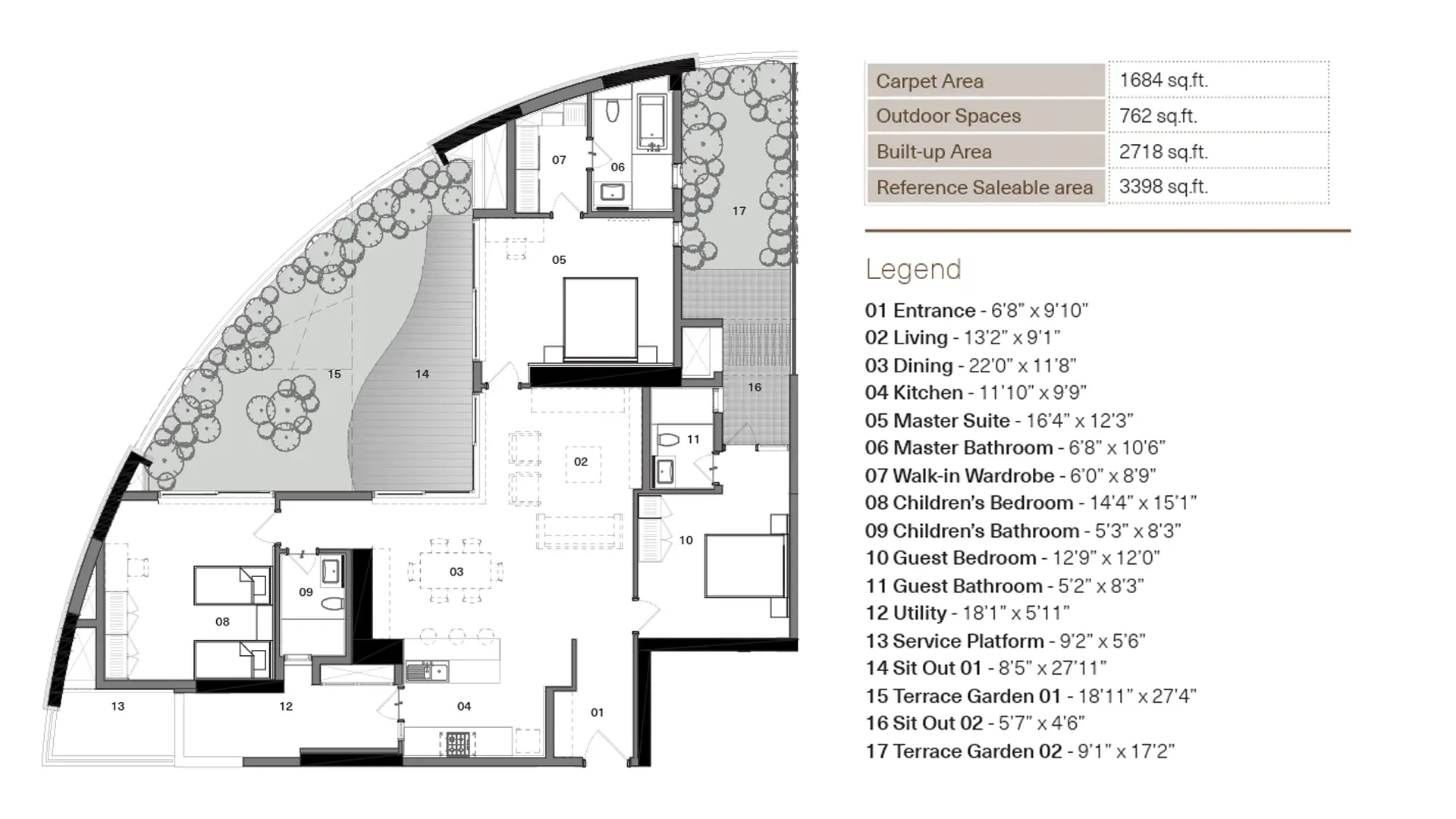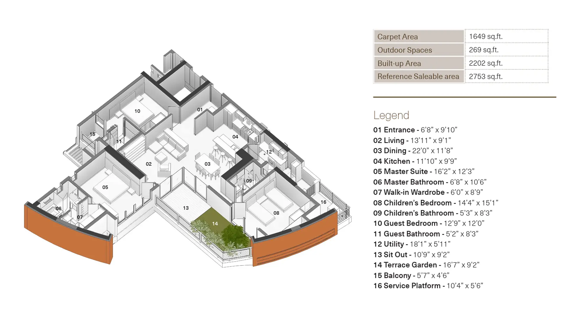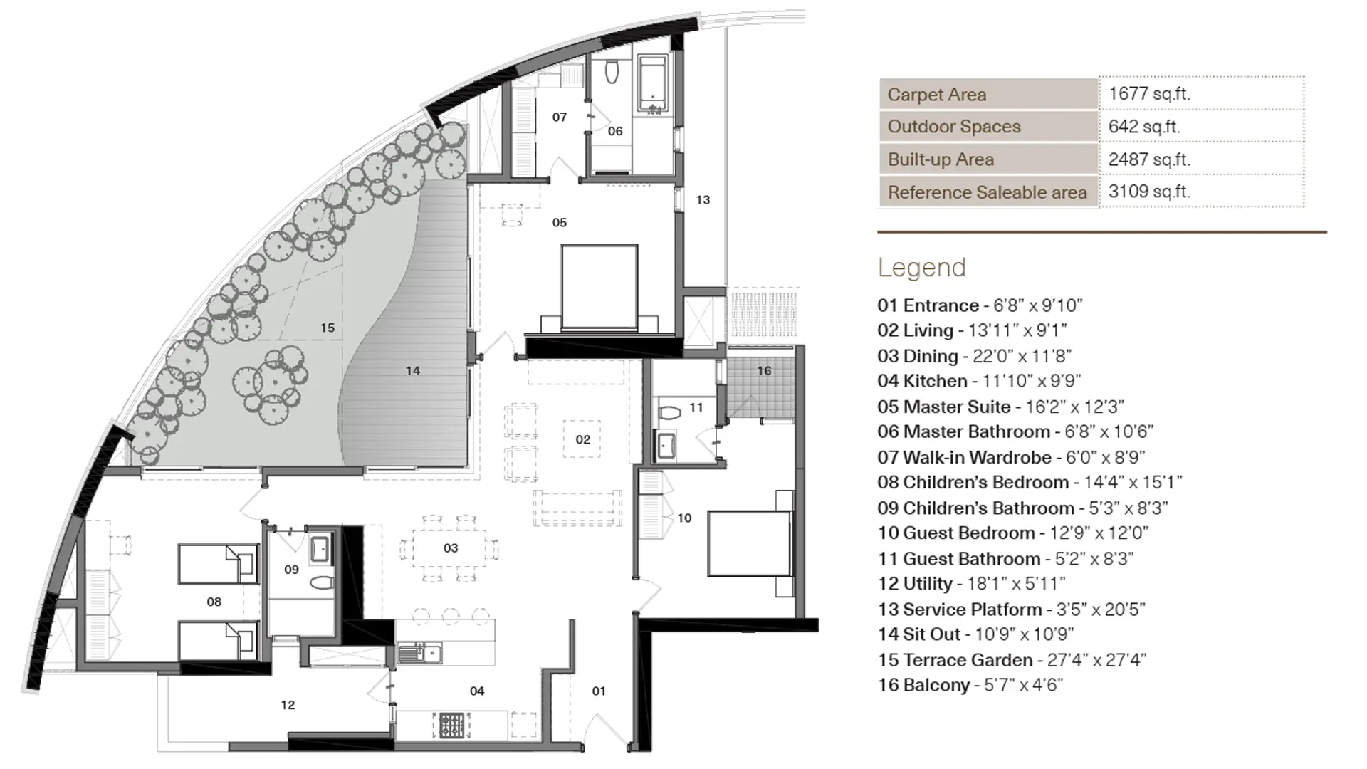 The Total Environment The Magic Faraway Tree offers apartments with a built-up area of 2753 Sq ft Sq ft and a budget range start onwards from INR 6.23 Cr.