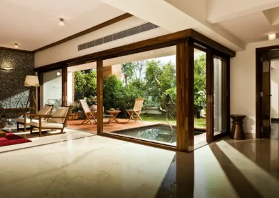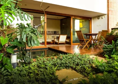 The designs of the Magic Faraway Tree in Bangalore incorporate nature into the living spaces with each unit opening to the terrace garden. Use of natural materials gives the residences a timeless look in addition to adding warmth.